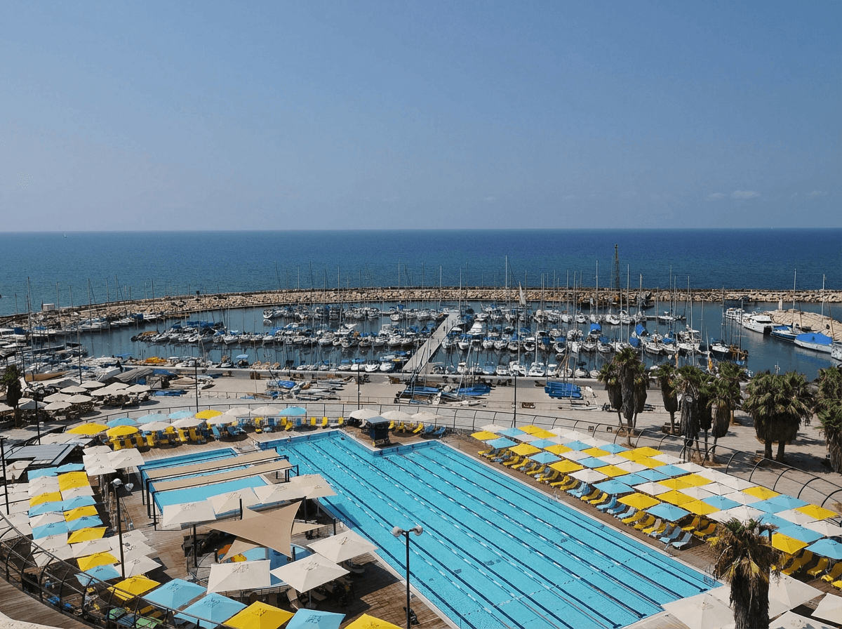 a swimming facility, but as an Urban Oasis. The visual identity draws from Israeli Heritage and natural elements, creating a language of raw authenticity that honors